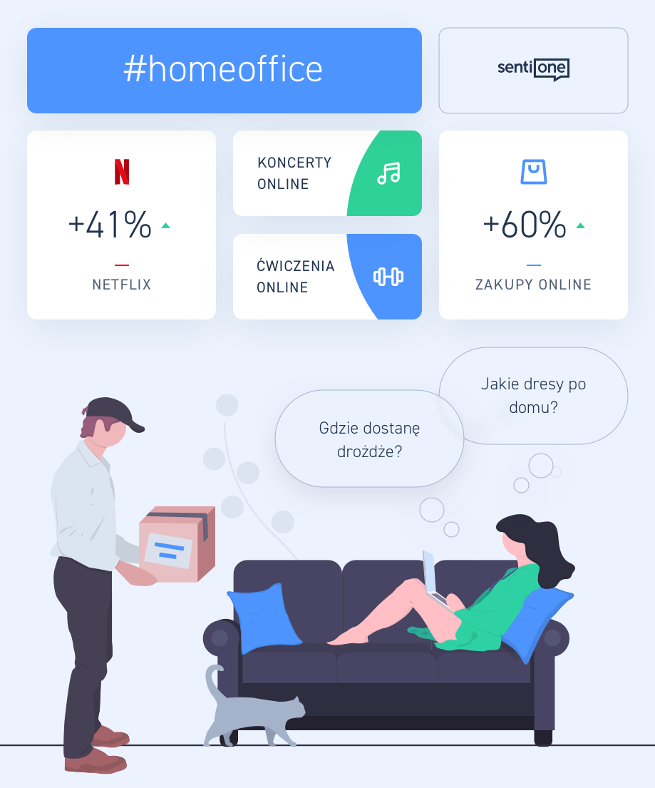 W SentiOne z powodzeniem monitorujemy internet od 9 lat; analizujemy miliardy wzmianek, dyskusje na forach internetowych, komentarze na blogach oraz wypowiedzi w mediach społecznościowych. Dzięki temu wiemy co było najbardziej pożądanym produktem podczas lockdownu, z kim najchętniej ćwiczono w sieci oraz które koncerty online cieszyły się największą popularnością.