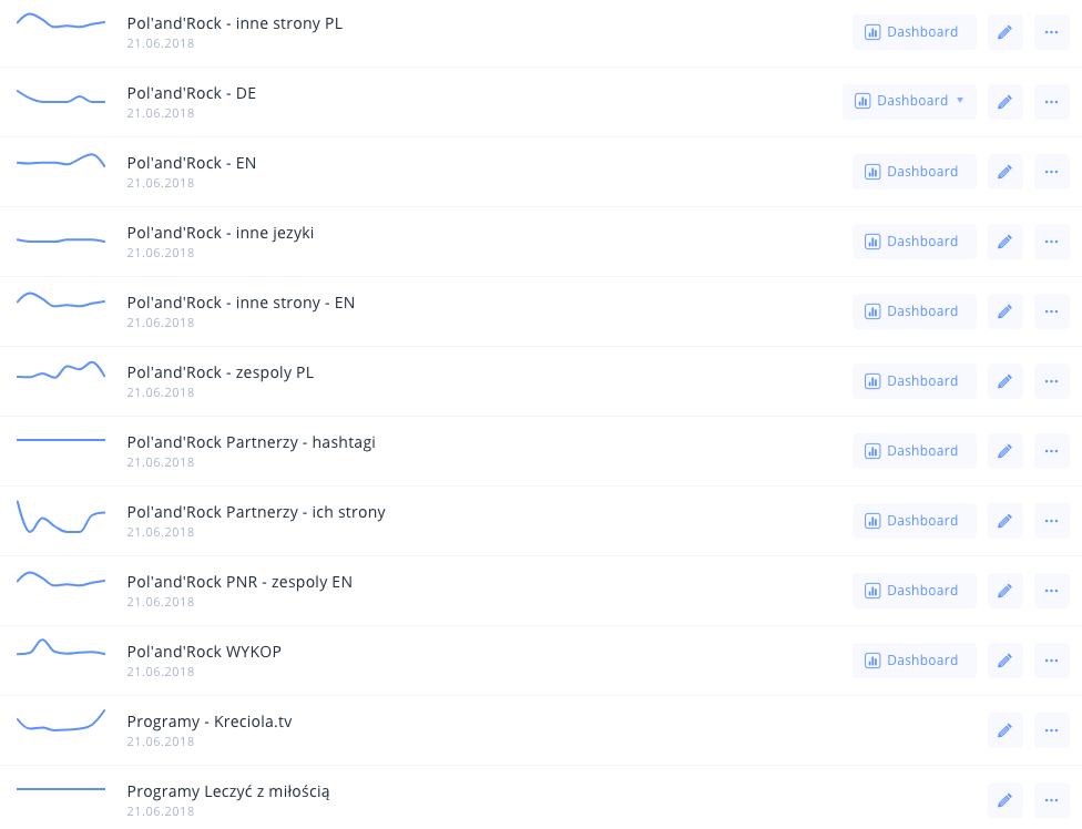 Z monitoringu staramy się wyciągnąć maksymalnie dużo. Odpowiednie ustawienie projektów i słów kluczowych pozwala na wyodrębnienie konkretnych kwestii i łatwiejszą ich analizę. W tym momencie w SentiOne mamy aż 30 różnych projektów, z których każdy pochyla się nad trochę innym zagadnieniem – nawet jeśli większość z nich oscyluje wokół Festiwalu.