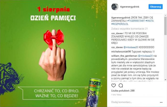 Kreację marki Tiger w dniu rocznicy Powstania Warszawskiego można nazwać wieloma słowami. Nam wystarczy jedno – nieadekwatna. Spowodowany nią kryzys został zarządzony bardzo dobrze, ale jednak… “niesmak pozostał”.