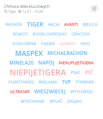 Słowa kluczowe dla tematu “Tiger” w dniach 9-10 sierpnia 2017r. Źródło: SentiOne.
