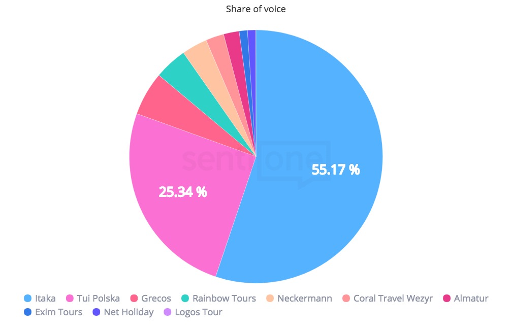 A o kim w takim razie rozmawiamy najchętniej? Okazuje się, że internetowe dyskusje dotyczące biur podróży są bezapelacyjnie zdominowane przez Itakę, pojawiającą się w ponad połowie wszystkich wypowiedzi. Drugie miejsce należy do Tui Polska, obecnego w co czwartej wypowiedzi internautów, a podium zamyka Grecos, wyspecjalizowany w wycieczkach do Grecji, czyli wciąż jednej z najpopularniejszych destynacji wakacyjnych wśród Polaków.