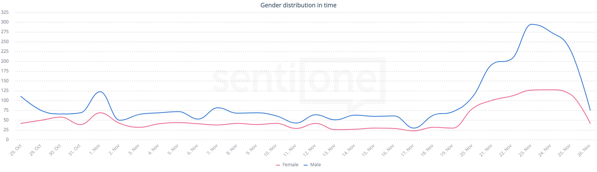 Gender distribution in time. Topic: fitness clubs. Source: SentiOne.