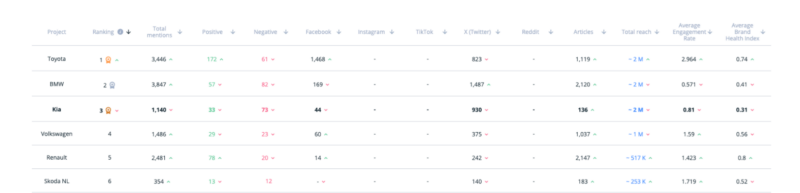 Škoda, the quiet achiever, maintained a steady hum of positive mentions centered around reliability and rally success. But low visibility — just over 3% of reach — means many consumers simply aren’t part of the conversation.