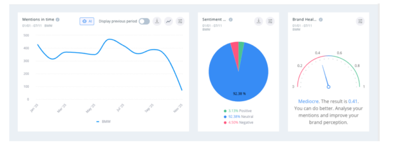 Between January and November 2025, we at SentiOne Listen tuned in to what drivers and enthusiasts were saying about six major car brands 👉 Volkswagen, BMW, Kia, Toyota, Škoda, and Renault.